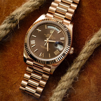 The Rolex Day-Date 40 (Ref. 228235) is the embodiment of prestige, power, and timeless design. Crafted in 18k Everose gold, Rolex’s proprietary rose gold alloy, this exquisite timepiece showcases a rich chocolate sunburst dial adorned with polished Roman numeral hour markers, giving it a refined and classic look.